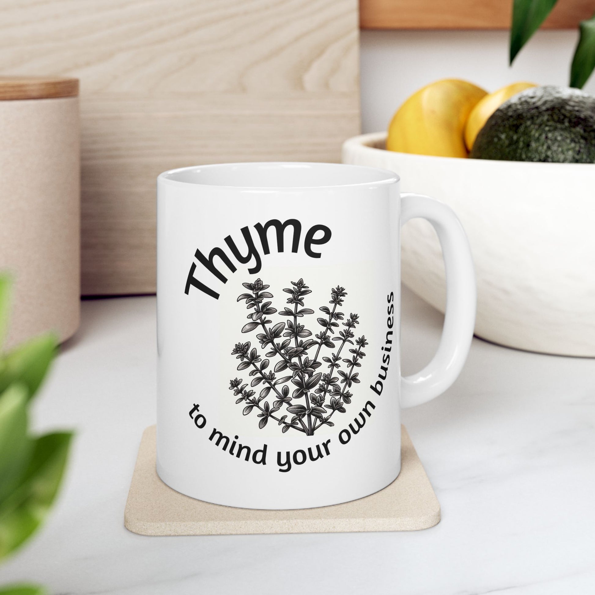Thyme to mind your own business mug - Perfect for gardening enthusiasts, Fun kitchen decor